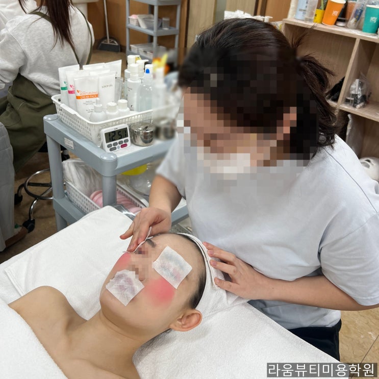 안녕하세요^-^ 라움뷰티미용학원입니다! 오늘은 피부 미용 국가자격증 실기 시험에서 1과제 중 클렌징 과제에 대해서 안내 해 드릴게요! 실기 시험이 시작 되면 1과제 관리계획차트 작성 후 바로 클렌징 과제에 들어가게 됩니다. 클렌징 과제는 사전에 화장이 된 모델 얼굴을 잔여물 없이 깨끗하게 지우는 과제인데요! 15분 안에 눈, 입술의 포인트 메이크업을 지우고 얼굴의 파운데이션을 클렌징 로션으로 완벽히 지워주어야 합니다. 리무버를 묻힌 화장솜을 이용해 눈, 눈썹, 입술의 색조 화장을 깨끗하게 지워야 합니다. 포인트 메이크업을 제거 한 뒤 클렌징 로션을 도포하여 얼굴에 남아 있는 파운데이션을 잘 녹여 깨끗이 제거 해 줍니다. ....... <img src="https://blogthumb.pstatic.net/MjAyNjAzMTdfMjIx/MDAxNzczNzM0NTU4MjQy.QfpHNGl0YSoZ4sUPBFzEtqjkPGVKHS-74rOg6OwCXIcg.pZjyjnrn8MAaIkjKHVYnct-LctL58EdBe1hGwJQOqykg.JPEG/KakaoTalk_20250625_145040086_07.jpg?type=s3" />