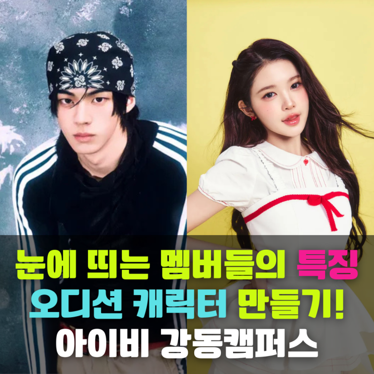 눈에 띄는 멤버들의 특징! 오디션 캐릭터 만들기 | 아이돌을 꿈꾼다면 꼭 필요한 전략 안녕하세요. 강동구 유일 오디션 시스템을 운영하는 아이돌 전문 트레이닝 학원, 아이비실용음악학원 강동캠퍼스입니다. 요즘 음악방송을 보다 보면 유독 눈에 들어오는 멤버들이 있습니다. 노래와 춤 실력도 물론 중요하지만, **단 한 번의 등장으로도 기억에 남는 ‘캐릭터’**를 가진 멤버들이죠. 최근 음악방송 MC로 활약하며 많은 팬들의 관심을 받고 있는 투어스의 도훈 과 하츠투하츠 에이나 역시 각자의 확실한 분위기와 캐릭터로 대중의 눈길을 사로잡는 대표적인 사례라고 할 수 있습니다. 오늘은 **아이돌 오디션에서 중요한 ‘캐릭터 만들기’**에....... <img src="https://blogthumb.pstatic.net/MjAyNjAzMTFfMTQz/MDAxNzczMjEwMjE2OTU3.mdI4aHsL4lyv2KC09N5-VzgJEqBGzrG3CAZwplJsn0cg.QnklINZUxKVDK4cluplcvb6Sm2p1hOg9DE74E5cj5jEg.PNG/%BB%E7%C1%F8_%BC%B3%B8%ED%C0%BB_%C0%D4%B7%C2%C7%CF%BC%BC%BF%E4._-_2026-03-10T215226.763.png?type=s3" />
