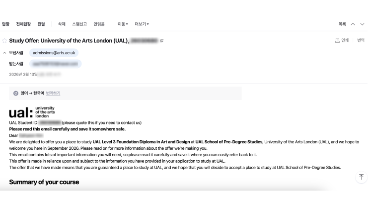 안녕하세요, 부산패션유학 전문학원인 파롤유학미술원입니다. 최근 센트럴 세인트마틴과 LCF 등 University of the Arts London (UAL)의 입시가 지난 2월 26일 마감이 되었습니다. 파롤미술원에서도 CSM과 LCF를 함께 준비했던 학생이 있었는데요. 이번에 좋은 소식이 있어 전달드리고자 합니다. 늘 그랬듯 올해의 CSM 입시 요구사항은 총 2가지였습니다. 500 단어 내외로 자기소개서 작성과, 포트폴리오 였죠. 여기서 제일 중요한 건 바로 포트폴리오 입니다. 총 25장 내로 구성되어야 하는 세인트마틴의 포트폴리오에는 단순히 패션과 관련된 내러티브 내용 이외에도 드로잉에 대한 비중이 중요하기 때문에 관찰드로잉을 포함한 실험적 드로잉....... <img src="https://blogthumb.pstatic.net/MjAyNjAzMTVfMTgx/MDAxNzczNTUzNzI1NTc1.ATkXwz7XuK_WcTBsLxrCf8DzrymwjA0LsU1Ol57-hVUg.102jOExkSu1LRxF8Q7khTAlYMiE_ZHRgBV6gWkYWQDUg.PNG/image.png?type=s3" />