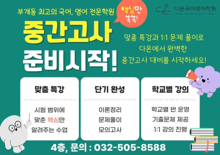 [부개동 국어학원][부개동 영어학원] 시험 끝나고 후회하지 않으려면? 중간고사 성적 바뀌는 결정적 차이