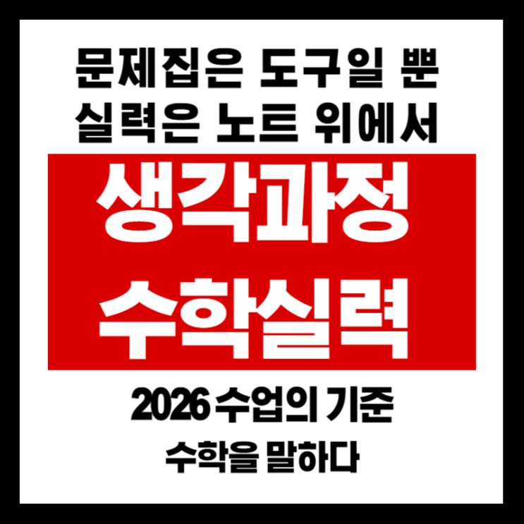 안녕하세요. 수학을 말하다입니다. 상담을 하다 보면 학부모님들이 자주 묻습니다. “문제집은 몇 권 정도 풀리나요?” 하지만 문제집 권수는 실력과 거의 상관이 없습니다. 저희 학원은 문제집보다 풀이 노트를 더 중요하게 생각합니다. 문제집의 여백은 생각을 펼치기에는 너무 좁습니다. 노트에 식을 차례대로 세워야 학생이 어디에서 막히는지 정확히 보입니다. 문제집에 풀이 흔적이 남아 있으면 학생은 “아는 문제”라고 착각하기 쉽습니다. 그래서 깨끗한 노트에 처음부터 다시 풀게 합니다. 그래야 진짜 실력이 드러납니다. 노트에 쌓인 풀이 과정을 보면 단순 계산 실수인지, 개념 이해가 부족한 것인지가 명확하게 드러납니다. 오답은....... <img src="https://blogthumb.pstatic.net/MjAyNjAzMTZfNTQg/MDAxNzczNjY1OTYyNTYz.K6EkbQ6XRBT9DipUsXrtmP5Uc-ubrbEX-C5L7b-OMaMg.QqV8Wm9YgFa44qeorPCX8_7DChYKtLPE6zFZOFFU3fwg.PNG/%C1%A6%B8%F1%C0%BB_%C0%D4%B7%C2%C7%D8%C1%D6%BC%BC%BF%E4_-001_%282%29.png?type=s3" />