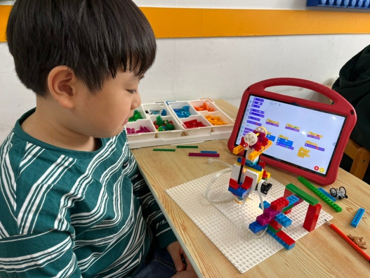 회전목마 모형을 만든 뒤, 놀이기구가 움직이도록 코딩해보았습니다^^ #부천코딩학원 #코딩 #코딩학원 #프로그래밍 #스크래치 #레고 #스파이크에센셜 #스파이크 #로봇 #로봇학원 #부천로봇학원 #로봇하드웨어 #로봇소프트웨어 #스마트러닝로봇학원 #놀이기구설계가 #회전목마 #놀이기구 <img src="https://blogthumb.pstatic.net/MjAyNjAzMTdfNDMg/MDAxNzczNzE2MjU3MDY0.IpE3_JCP1bT_cYS2_g3W2mnacigqPhtDzisBex9qb8Qg.VovoT85XzLBbT5aWuPjsWYepUhRvi6EFqm7nh798HSkg.JPEG/IMG%A3%DF4416.JPG?type=s3" />