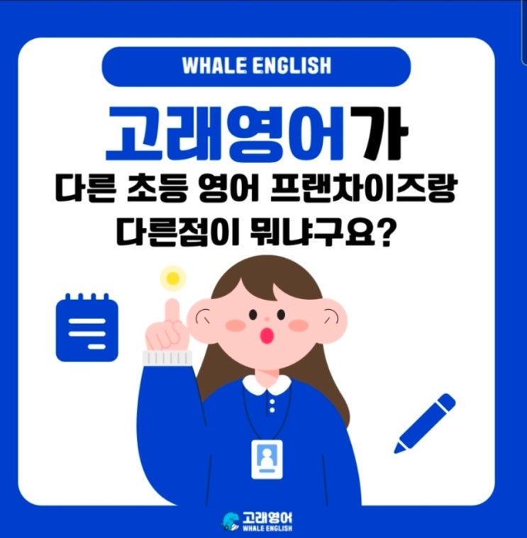 안녕하세요 고래영어 신용캠퍼스입니다! 신학기는 학교적응과 함께 우리 아이들을 재미있게, 그리고 실력도 성장할 수 있는 곳을 찾아다니시느라 바쁘시죠?! Whale English(고래영어)는 Listening(듣기) Speaking(말하기) Writing(쓰기) 3가지 모두 균형있는 학습완성 Whale English(고래영어)는 AI인공지능 원어민과 함께 보다 정확한 발음을 듣고 학습, 내가 직접 뱉어보는 말하기연습의 반복, 그리고 배운 어휘와 문법을 사용해 쓰기까지!! 매일 하루 60분 트레이닝하며 선생님과 1대1 피드백 및 보충설명까지!! 영어가 늘 수 밖에 없겠죠?! Whale English(고래영어)를 선택하시는 이유 [자료출처- 고래영어 공식블로그] 프랜어학....... <img src="https://blogthumb.pstatic.net/MjAyNjAzMTdfMjA3/MDAxNzczNzUzMDQzOTU1.WIDeFU1pxHt-G-oWXjApJIwV9G5Y0xl_EWx4F75onaEg._R_oNKU0T1qM9-jM721cyEWsJOkQRDkbyrwHd0zt1MMg.JPEG/900%A3%DFScreenshot%A3%DF20260317%A3%DF215325%A3%DFNAVER.jpg?type=s3" />