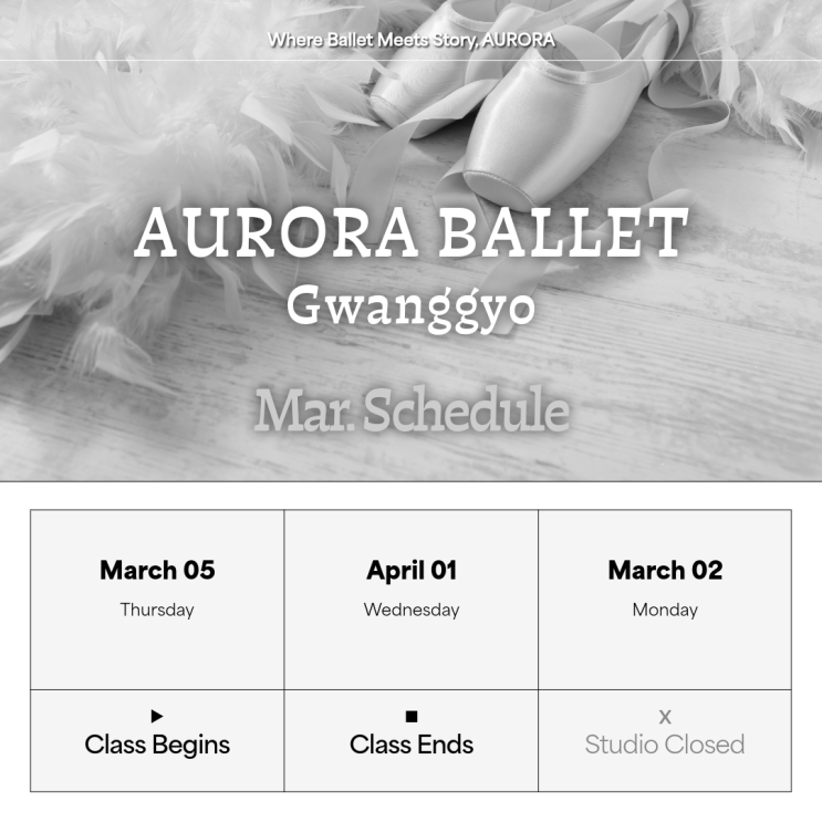 [오로라발레 광교중앙역점] 03월 수업일정 | 발레하러 AURORA | 성인발레 유아발레 초등발레