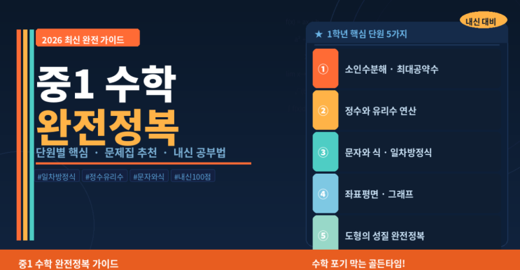 중1 수학 첫 시험에서 무너지지 않으려면? – 단원별 핵심 정리 + 문제집 추천 + 공부법 완전 가이드