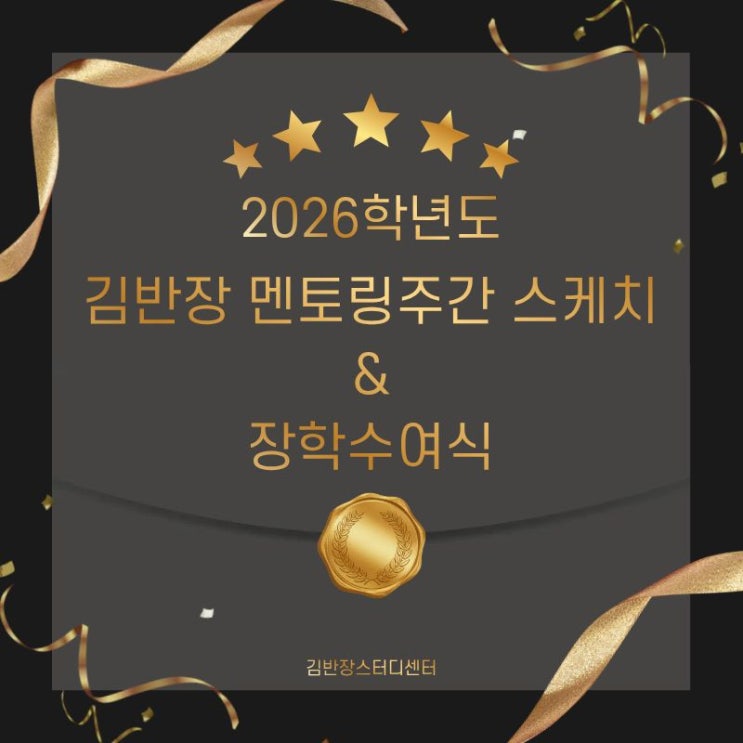 2026년 겨울캠프의 뜨거운 열기만큼이나 알찼던 김반장 멘토링주간과 장학수여식 이벤트를 소개합니다 2026 김반장 멘토링 주간 & 장학수여식 올해도 학생들의 고민을 영역별로 세분화하여 1) 수시-인문논술 대비 2) 국어학습법-방학캠프 100% 활용법 3)정시-불수능에서도 살아남는 고득점 노하우 위 주제들을 중심으로 선배들의 공부 경험담과 과목별 학습 배분 및 자기관리법 등 여러 부분에 걸친 다양한 질문들을 답변하고 듣는 시간으로 진행되었습니다 추가로 이번 멘토링 주간에는 #김반장장학수여식 과 함께 앙코르 멘토링이 진행되었습니다 김반장 재원생들에게는 후배들이 선배들에게 궁금한 질문들을 모아모아 과목별 공부 꿀....... <img src="https://blogthumb.pstatic.net/MjAyNjAzMDlfNjQg/MDAxNzczMDQ5NDM5Nzc5.EcTFKqafFKquPyxUnL2ZzCEohFpg0-kzw5NInnnD1oAg.MDQj1Pyeb23SsmTM0eQS04IiuT0Exz66qoRWJp8t0awg.JPEG/%3F%A0%9C%EB%AA%A9%EC%9D%84_%3F%9E%85%3F%A0%A5%3F%95%B4%EC%A3%BC%EC%84%B8%3F%9A%94..jpg?type=s3" />