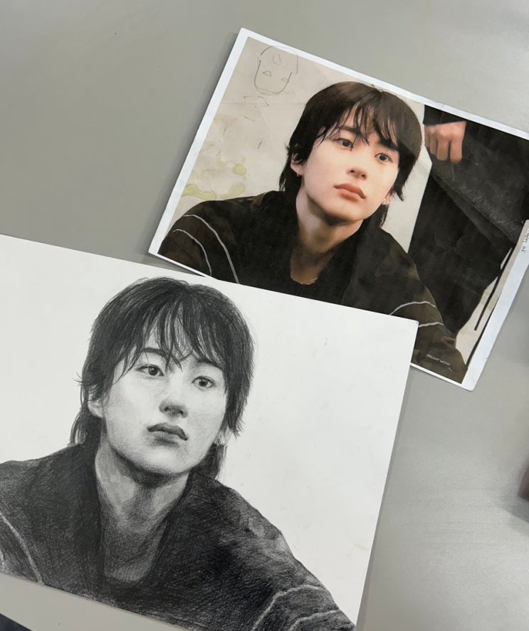 라이즈 앤톤 인물 연필소묘 – 고등부 학생 작품 Anton (RIIZE)을 참고 사진으로 관찰하며 연필 소묘로 완성한 고등부 학생의 인물화 작품입니다. 사진 속 인물의 비율과 구조를 정확히 파악하는 것부터 시작하여 눈, 코, 입의 위치와 형태를 세심하게 관찰하며 전체적인 얼굴 균형을 잡았습니다. 연필 소묘에서는 명암 표현이 매우 중요한데, 이번 작업에서는 다양한 톤을 단계적으로 쌓아가며 얼굴의 입체감을 자연스럽게 표현하는 데 집중했습니다. 특히 눈 주변과 코, 입술의 미묘한 음영을 섬세하게 표현하여 인물의 차분한 분위기와 표정을 잘 살렸습니다. 머리카락은 한 올 한 올의 흐름을 따라 자연스럽게 표현하며 질감을 살렸고, 옷 부....... <img src="https://blogthumb.pstatic.net/MjAyNjAzMDZfMTYy/MDAxNzcyODAzOTkwMDEw.zYhTyFHZwqLV5y2UkBySXvaUQhoxSukzsu6x7OjnHmcg.89ybwEaF9ZL2TFIyx4Ee5T4gutrQ8e9wn9NwzE9JoScg.JPEG/IMG%A3%DF5163.jpg?type=s3" />