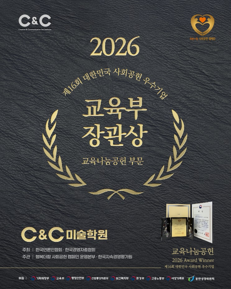 안산 입시 미술학원 교육부 장관상 수상! 미대입시는 씨앤씨