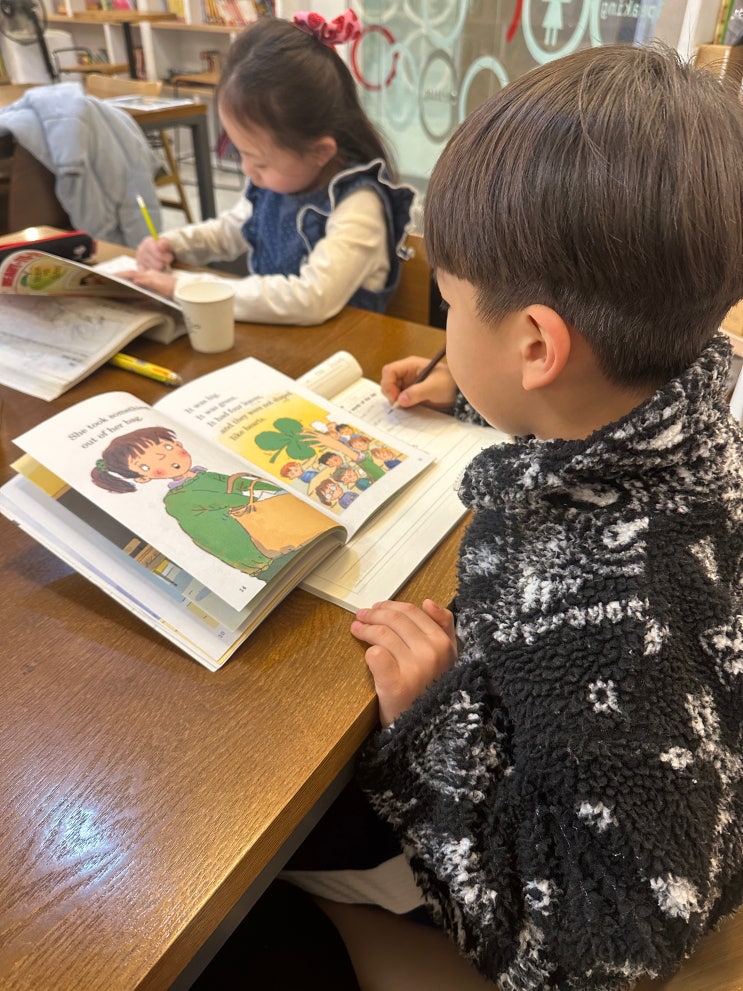 안녕하세요 오늘은 우리 GE 친구들 Library 시간을 어떻게 보내는지 엿보려고 해요~ 우리 학원 막둥이 라인입니다! 집중력 가득한 모습 좀 보세요 Library 시간에 책을 천천히 읽고 key word부터 하나씩 정리해 보고 있는 모습이에요. 읽고 → 생각하고 → 정리하는 연습을 하면서 작지만 차근차근 성장하고 있는 모습이 참 기특하네요 처음에는 단어를 찾는 것도 어려워하지만 반복하다 보면 스스로 중요한 단어를 찾아내기 시작합니다. 막둥이들이지만 집중력은 최고입니다 다음으로 새로 중학교에 입학해서 피곤한 하루였을 텐데도 책을 펼치고 차분히 읽는 모습이 참 기특합니다! 아주 듬직한 언니 오빠 라인입니다. 중등이 되면 학습량....... <img src="https://blogthumb.pstatic.net/MjAyNjAzMDlfOTIg/MDAxNzczMDQyNDI4MTYz.41U3x4FMTFZ9Jh0yhstx7zk2Dsvkp2ib_4GUbrPz0Kog.G86WoW65vBnFZ0a6jx7DjFUadWWjLlFTX4Q6r-7crcAg.JPEG/KakaoTalk_20260309_162550217.jpg?type=s3" />
