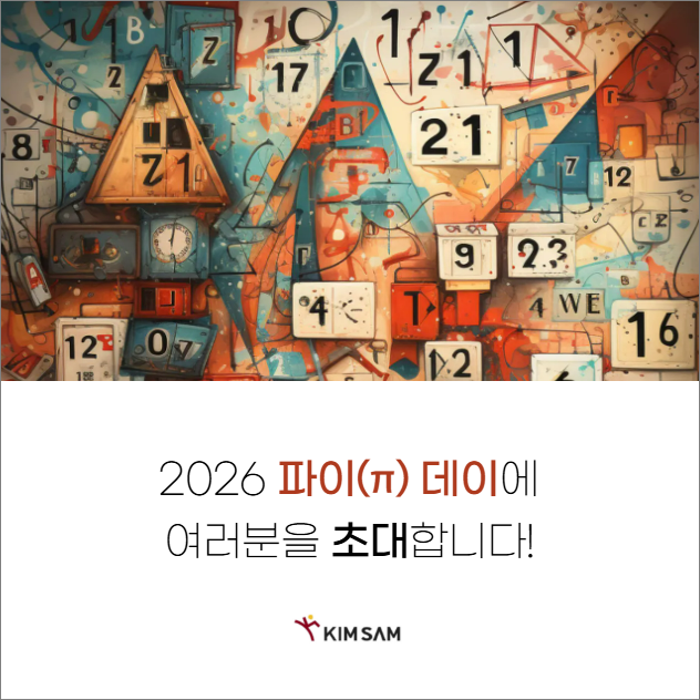 신나는 '파이(π) 데이' 대탐험 안녕하세요, 학생 여러분! 드디어 진짜 파이데이가 찾아왔습니다! 원주율 π의 근삿값 3.14에서 유래한 파이데이, 올해는 3월 14일 바로 그날 김샘수학에서 함께 즐깁니다. 작년에 함께했던 친구들, 기억하나요? 올해는 더 신나는 게임들로 돌아왔어요! 수학이 이렇게 재미있을 수 있다는 걸, 이번에도 직접 느껴보세요. ■ 일시 : 3월 14일(토) 오전 11시 ~ 오후 1시 ■ 장소 : 김샘수학 5층 대강의실 이런 게임들이 기다리고 있어요! ▶ 협동 원주율 쓰기 4명이 하나의 펜에 긴 끈을 매달아 함께 원주율을 써요. 팀워크가 핵심! 가장 정확하고 길게 쓴 팀이 승리합니다. ▶ 3.14M 알까기 정확히....... <img src="https://blogthumb.pstatic.net/MjAyNjAzMDVfMjIy/MDAxNzcyNjg5MDMyMTI4.uBYWu01NKiOtvNQm1oNmde8whGzvyajomwYNHs7MCBgg.9leMh5BOJIvUgfUTB2mXALBxd5fOG0WyNDsuYKiuPqog.PNG/20260305_143702.png?type=s3" />