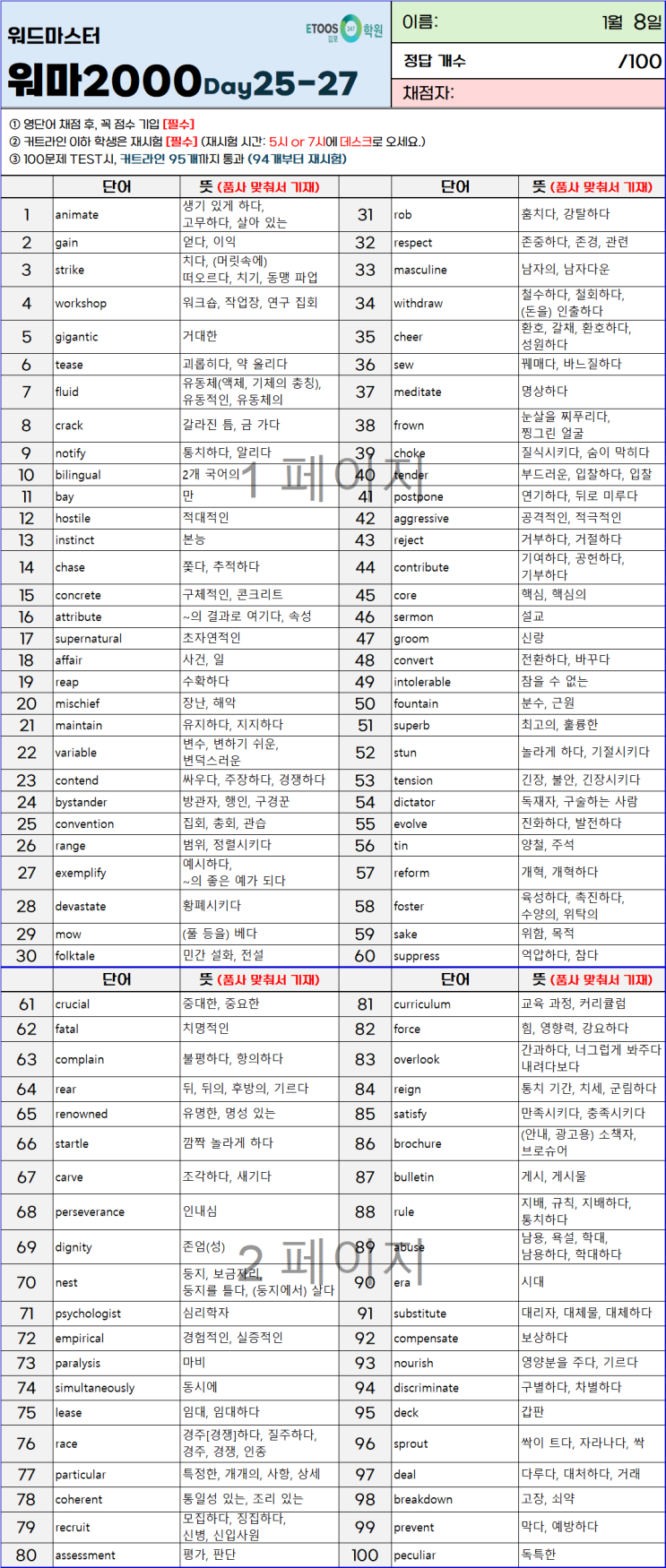[일일 영단어 테스트] 2026.03.07
