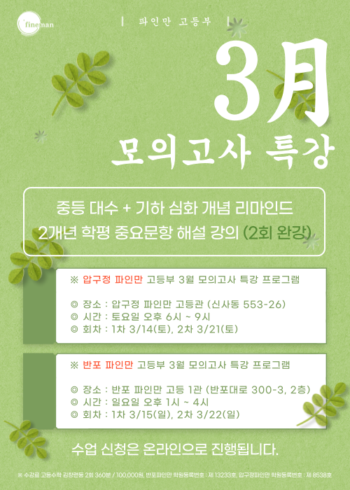 [반포파인만 고등관] 2026 3월 모의고사 특강 안내