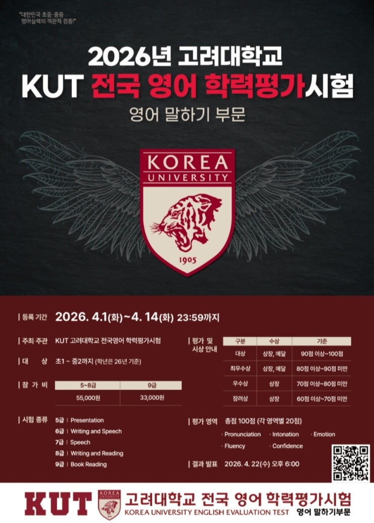 우리 아이의 첫 영어 무대 — 응암동학원 고려대 KUT 영어 말하기 대회 안내