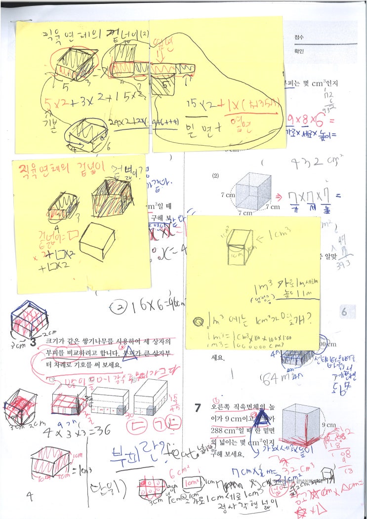 6단원의 부피에 대한 내용을 정리하고 있습니다! 두 친구 모두 현재 부피라는게 뭔지도 알쏭달쏭해 하고, 소수의 곱셈에 대해서도 자신이 없어하고, 정답률이 높지 않은 상황이라서, 완전히 원리부터 다시 해부해서 가르치고 있습니다. 이번주에 아마 6단원 내용 설명이 한번 끝날 것 같은데, 이 내용설명이 끝나면 다시 6-1학기 처음으로 돌아가서 1단원부터 다시 해설을 해 줄 생각을 하고 있습니다. 책을 구매하기 보다, 프린트로 찝어서 복습을 시킬 예정이고, 학생들이 적은 문제를 풀더라도, 정확하게 알고 넘어가도록 지도하겠습니다. <img src="https://blogthumb.pstatic.net/MjAyNjAzMTdfNDIg/MDAxNzczNzMxNTA3MzEw.QXdzJwqcu8IuZRYn8B491R4f8TMvsX6CXCb9M8q6GYUg.uPdTJ7P-34SQcH5v3MtiRYJqdeA7OS091bDqrWr7iKcg.JPEG/20260317160403_00001.jpg?type=s3" />