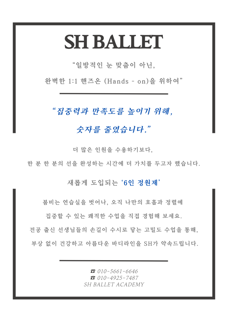 SH BALLET 성인반 6명 정원 체제 변경안내