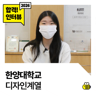 2026학년도 한양대 에리카 디자인계열·상명대 디자인학부 합격 정시 합격생 인터뷰 인터뷰 미리보기 ─ 지원한 전형과 학교를 선택한 이유를 알려 주세요. 저는 실기 전형으로 지원했고, 문제은행이 있는 학교를 중심으로 선택했습니다. 실기 경력이 짧은 편이어서 제시물을 충분히 준비하고 익혀서 그리는 방식이 저에게 더 잘 맞는다고 생각했기 때문입니다. ─ 한양대 디자인계열에 지원한 이유가 있나요? 1학년 때 다양한 분야를 융합적으로 배우고, 2학년 때 세부 전공을 선택할 수 있다는 점이 매력적으로 느껴졌습니다. 여러 디자인을 직접 경험해 본 뒤 전공을 정하고 싶어서 한양대 디자인계열을 선택하게 되었습니다. ─ 실기 시험을 준....... <img src="https://blogthumb.pstatic.net/MjAyNjAzMTlfMzcg/MDAxNzczODk3NDQxMDU1.IY3smIUqG0dXoOBLIne51LXSw4b5ilS0V7x6Twt7ZNIg.ETg8FEp6RjJx4lwGPpt6Cve5leEU5qcb3UJXkJjZ20Ug.GIF/%C0%CC%BC%F6%BA%F3.gif?type=s3" />
