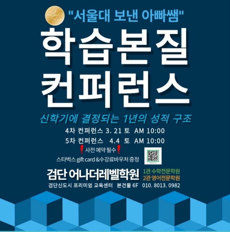 서울대보낸 아빠쌤 학습본질 컨퍼런스.신학기에 결정되는 1년의 성적구조!검단어나더레벨학원