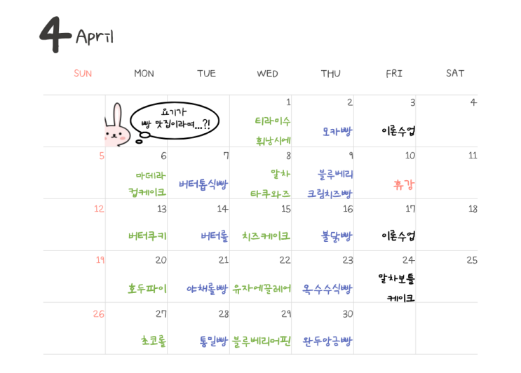 평택 베이킹 클래스 4월 정규반 시간표 안내 !