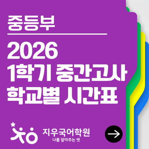 [지우국어학원-중등부]2026-1 중간고사 학교별 내신 시간 및 중1 정규 시간 안내
