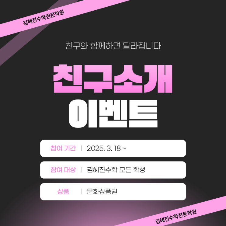 흥덕수학학원 김혜진수학 친구소개 이벤트 안내