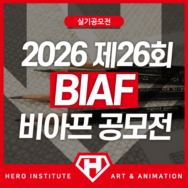 안녕하세요! 새로운 가치를 경험하는 곳! 프리미엄 미술교육, 히어로애니입니다.웹툰과 만화, 영상 애니메이션, 그리고 게임그래픽 디지털 콘텐츠 분야에서 실기 영웅을 꿈꾸는 학생 여러분! 본격적인 전국 규모 단위의 공모전·실기대회 시즌이 시작된 지금인데요! 오늘은 2026 제26회 BIAF 공모전, 비아프 공모전에 대한 모집요강 내용으로 소개를 드리고자 합니다. BIAF는 부천국제애니메이션페스티벌의 약자로 만화·웹툰·콘텐츠 산업의 중심지, 경기도 부천시에서 주최하는 세계적인 애니메이션 페스티벌입니다. 해마다 BIAF에서는 애니메이션 페스티벌과 함께, 전국의 청소년들을 대상으로 한 실기공모전(중등)과 실기대전(고등부)으로 하는....... <img src="https://blogthumb.pstatic.net/MjAyNjAzMTJfMjgy/MDAxNzczMzAwNjgwOTc1.3XJw-P88-DEoCBthvziQ0SsFyo44oAZDsMQ9kAu3EMcg.uUo4VVThG1ibprQ2M_aF9DAAlFUNQoXbQUe-hNcfF6wg.PNG/0-0.png?type=s3" />