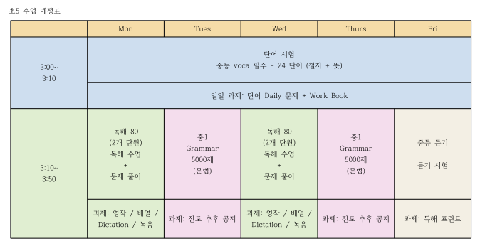 초 5 S반 2026 1분기 학습계획표