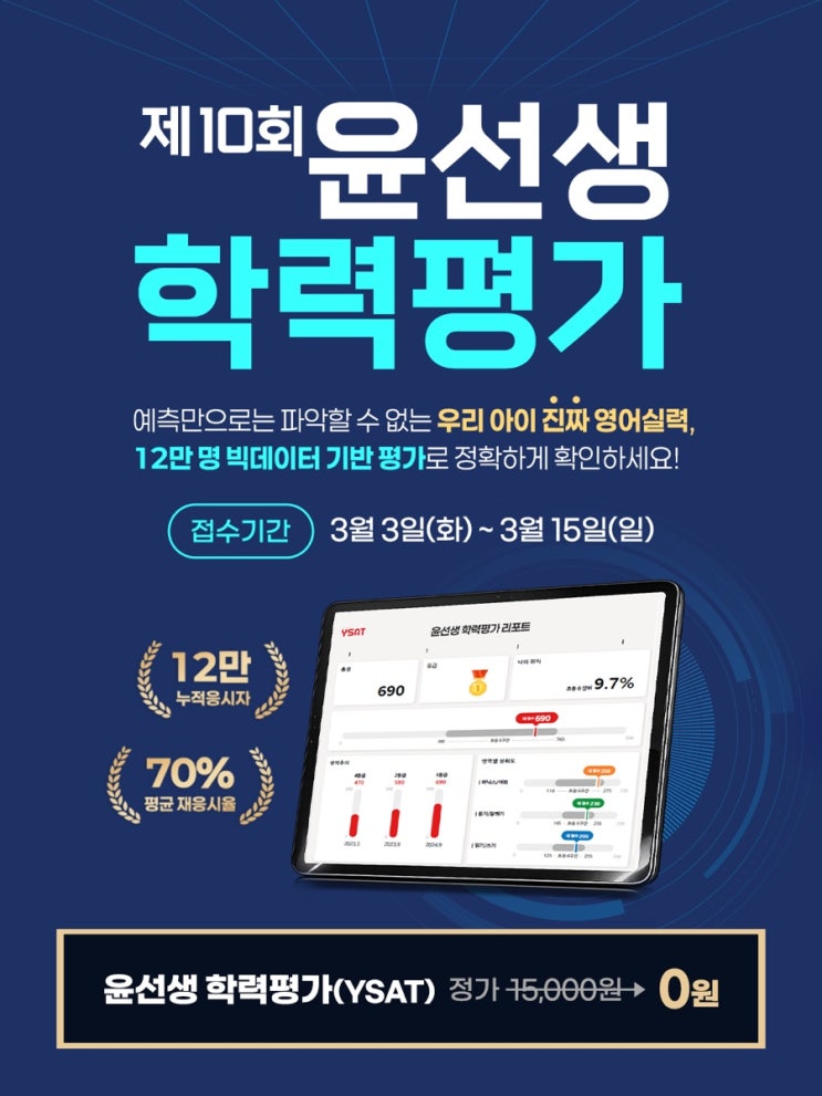 제10회 윤선생 학력평가 실시 안내 3월 16일부터 시작합니다! 안녕하세요. 윤선생IGSE아카데미 안동강남학원입니다. 우리 아이의 영어 실력을 정확하게 객관적으로 확인할 수 있는 기회, 제10회 윤선생 학력평가가 3월 16일부터 실시됩니다. 많은 학부모님들이 “우리 아이 영어 실력이 어느 정도일까?” “지금 학습 방향이 맞는 걸까?” 라는 궁금증을 가지고 계시는데요. 윤선생 학력평가는 이러한 궁금증을 데이터 기반으로 정확하게 확인할 수 있는 영어 실력 평가입니다. ⸻ 12만 명 빅데이터 기반 온라인 영어 평가 윤선생 학력평가는 전국 약 12만 명의 학습 데이터를 기반으로 한 온라인 영어 실력 평가입니다. 단순한 시험이....... <img src="https://blogthumb.pstatic.net/MjAyNjAzMTZfNjAg/MDAxNzczNjcwMDYyMTgx.6187W1BF5cCOhLAJ04cNYEseE2be3yjLHgJZCT4p9QQg._YHiqZ23uCSTiq_jgTIL79RupJsO-zW13_PHly_HvkEg.JPEG/IMG%A3%DF2149.jpg?type=s3" />