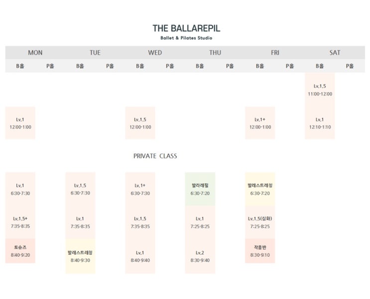 [더발라레필 논현점] 2026.3월 시간표