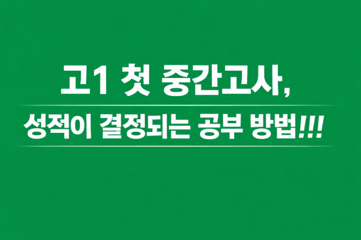 고1 첫 시험, 1학기 중간고사에서 전과목 좋은 등급 받는 가장 효율적인 공부 방법 고등학교에 입학한 뒤 처음 치르는 1학기 중간고사는 생각보다 중요합니다. 첫 시험에서 받은 성적이 이후 자신감, 공부 습관, 내신 전략을 모두 결정하기 때문입니다. 하지만 많은 학생들이 고등학교 시험을 중학교 방식으로 공부하다가 실패합니다. 그래서 오늘은 고1 학생이 첫 중간고사에서 전과목 좋은 등급을 받을 수 있는 체계적인 공부 방법을 정리해보겠습니다. 1단계 : 시험공부는 “시험 4주 전”부터 시작한다 고등학교 시험은 시험기간 2주 공부로는 절대 부족합니다. 가장 이상적인 공부 시작 시점은 시험 4주 전입니다. 공부 계획은 다음처럼 잡....... <img src="https://blogthumb.pstatic.net/MjAyNjAzMDdfMzAg/MDAxNzcyODQ4MTMzNTYy.E7sdJzO3bm0nKJH51Z_3-3m-xm17IxSlSa1LKJCiK0Qg.dwV8aXCQPzjfot3WWyD-nJNiIEmMxEISrxnA67kvYLsg.PNG/900%A3%DFfile%A3%DF00000000ef28720984cf64af23cc55d2.png?type=s3" />
