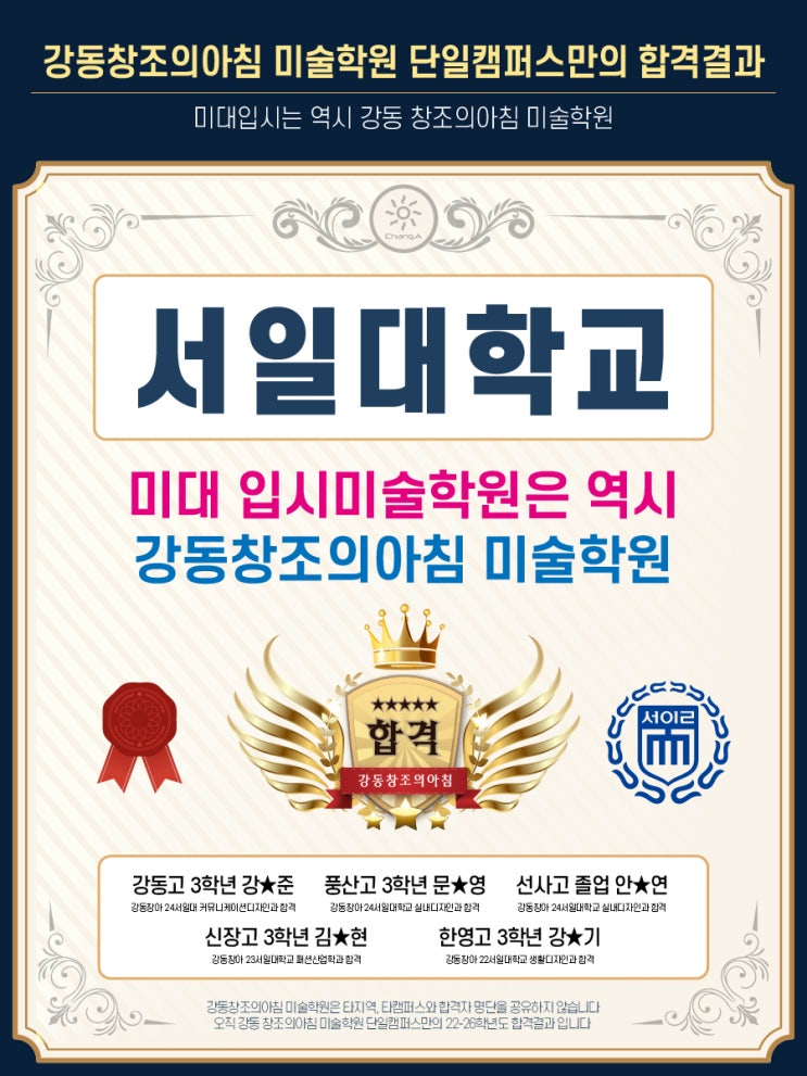 강동창조의아침 미술학원 미대합격자 - 서일대학교