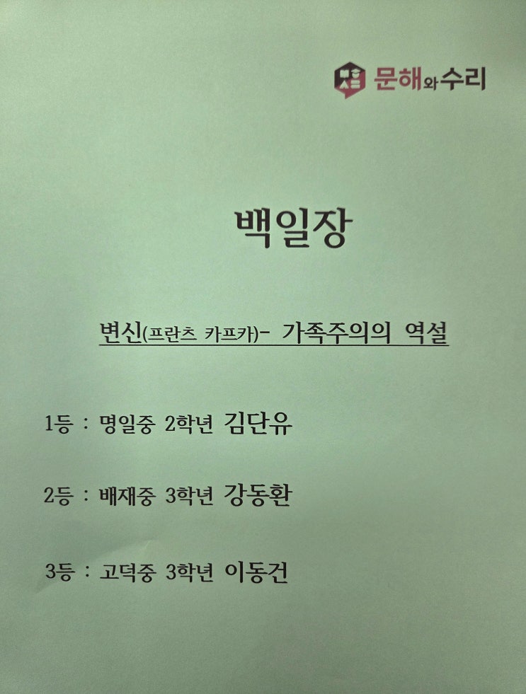 백일장 입상자- 문해와 수리 명일본원