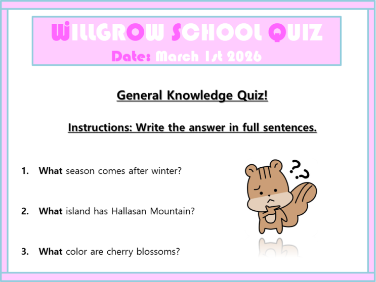 안녕하세요! ‘자라는 영어, 잘하는 영어 윌그로우 어학원 동탄 캠퍼스입니다.’ ’매주 일요일 블로그 퀴즈‘ 이번주 퀴즈 정답 선물은 바로!!! 달콤바삭 사르르 ’바나나 킥‘ 이번주 퀴즈 선물도 기대하고 있어!! 맛있는 과자가 찾아올거얌ㅎㅎ QUIZ TIME LAST WEEK THIS WEEK [이번 주 퀴즈입니다. 블로그에 매주 퀴즈를 올리고 있으니 풀어보고 인스타와 블로그에서 퀴즈 답을 확인해보세요!] #동탄맘 #능동맛집 #동탄맛집 #영어학원 #능동영어학원 #반월초 #기산초 #능동초 #한마음초 #능동중 #푸른중 #기산중 #초등영어 #중등영어 #영어기초 #좋아요 #맞팔 #선팔환영 #윌그로우어학원 #윌그로....... <img src="https://blogthumb.pstatic.net/MjAyNjAzMDhfMTU5/MDAxNzcyOTM1MDYzMTk1.rNGzpXzn-yhfvYdRpvFCrIStQY8asgM7AggPUoGadqAg.mcgXrQ_MnKpuyF9uRQ5_mLvcDtU1H88y2pyWGQSFYEQg.PNG/IMG%A3%DF9416.PNG?type=s3" />