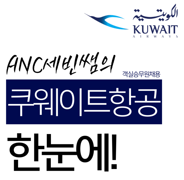 안녕하세요 승준생 여러분! 정말 오랜만에 돌아온 부산외항사학원 ANC 세빈쌤 입니다♥ 그동안 ANC에 채용도 정말 많았는데요! 국비로 진행되는 케이무브 과정들과 항공과입시, 지상직 승무원 준비반, DCS수료과정까지 정말 많고 다양한 커리큘럼 속에 블로그를 잊고 있었네요ㅠㅠ 앞으로는 예전처럼 블로그도 자주 올 예정이라 다들 꼭 많이 봐주세요!! 다시 본론으로 돌아가서ㅎㅎ 쿠웨이트항공 객실승무원채용이 시작되었습니다! 쿠웨이트항공 객실승무원 채용 자격요건 자격요건을 먼저 알아보자면, 학력은 고등학교 졸업이상, 만20세 이상 지원가능합니다! 신장은 암리치 212cm 이상, 어학부분은 영어능통자 우대사항은 수영가능자 입니다. ....... <img src="https://blogthumb.pstatic.net/MjAyNjAzMTZfMjQ3/MDAxNzczNjQwODA5MDYx.7qOzAdzW1g0puQRC4weL9KkUdr4avz1Pde8cSus0ywIg.ujOIHT_xsaStBqgEmaggIb5O-1DBgQj3Wgg6_2MwZ8Mg.PNG/image.png?type=s3" />