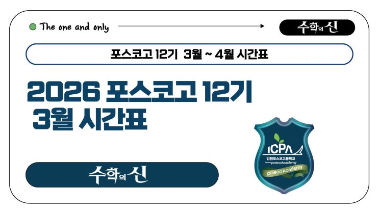 안녕하세요~수학의신학원입니다. 포스코고 학부모님들께서 아셔야할 내용들입니다. 학생들이 잘 이야기안해서 모르고 계시는 부분들이 있을것으로 생각이됩니다. 올해부터 포스코고가 수행평가랑 지필평가 반영비율도 변경이되었습니다. 그리고, 이번 포스코고12기는 부교재가 없고 프린트로 배부됩니다. 부교재는 없으니 알아서 문제집사서 풀라고하셨다고 합니다. 저는 부교재가 없는것을 더 선호하는데 부교재가 없던 9기 아이들을 수업했을때 5등급~6등급 학생들을 2~3등급으로 성적을 올렸습니다. 그때 저희 자체교재와 저희 모의평가에서 숫자까지 똑같은 문제가 나와서 제자들이 대박이라고 했었는데... 그때 제자들 성적 최대치로 끌어 올....... <img src="https://blogthumb.pstatic.net/MjAyNjAzMDZfNTIg/MDAxNzcyNzYyNzEzNzc4.aOADgAy6Dmz786fKeAIjHuau9hXao_k0KZ5SYNJ7Lh0g.Wblc_hFLcc0M0c3ICLtV7a7asK3zgnd_SkHMjfc08L0g.JPEG/%C6%F7%BD%BA%C4%DA%B0%ED%BD%C3%B0%A3%C7%A5_%283%29.jpg?type=s3" />