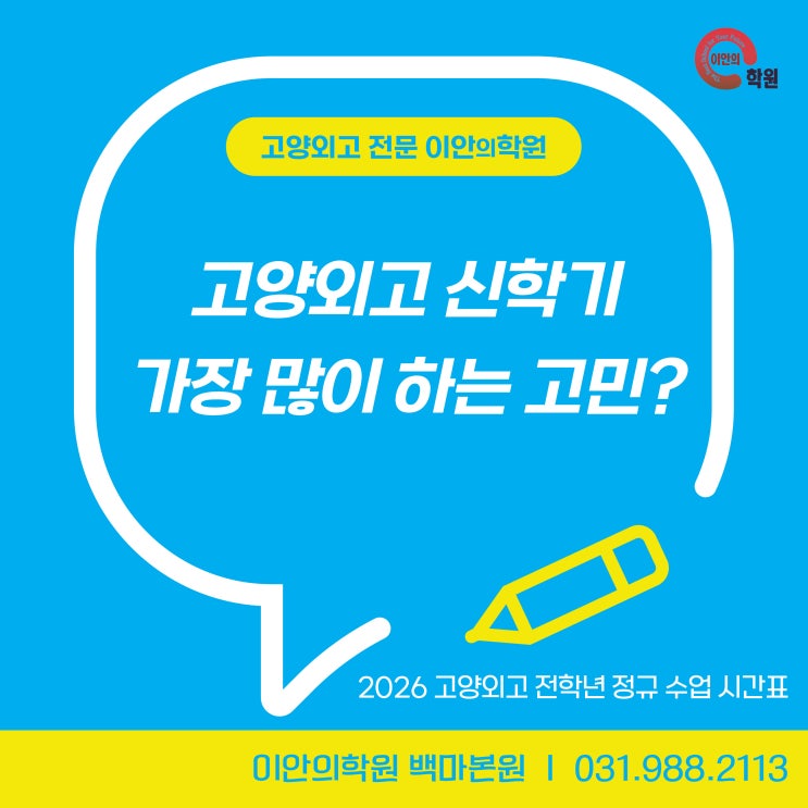 신학기에는 무엇을 더 할지보다 무엇부터 잡을지가 중요합니다 3월이 되면 고양외고도 새로운 학년이 시작됩니다. 신학기 시즌이 되면 학생들이 꼭 한번씩 하는 고민이 있습니다. " 지금 공부 방향이 맞는 걸까? " " 어떤 과목을 먼저 잡아야 하지? " " 신학기부터 흐름을 못 잡으면 어떡하지.." 실제로 상담을 하다보면 이런 이야기를 하는 학생들이 꽤 많습니다. 외고는 단순히 공부를 안 해서 성적이 흔들리기보다 공부는 하고 있는데 방향이 잘 안 잡혀 불안해지는 경우가 더 많습니다. 그래서 고양외고 학생들에게는 신학기 초에 공부량을 늘리는 것보다 공부 흐름을 먼저 잡는 것이 더 중요합니다. 신학기에....... <img src="https://blogthumb.pstatic.net/MjAyNjAzMDZfMjM5/MDAxNzcyNzgyNTcyMzEw.jbsUV8prbhYGjvb3ODIFQKUWD4IGH_c758t1-r0Xe78g.D29Nn6rBPV0T2qgXDArco9WpcwiPHxsrJhksiQJbS2Mg.JPEG/%C1%A6%B8%F1%C0%BB-%C0%D4%B7%C2%C7%D8%C1%D6%BC%BC%BF%E4_-001_%2877%29.jpg?type=s3" />