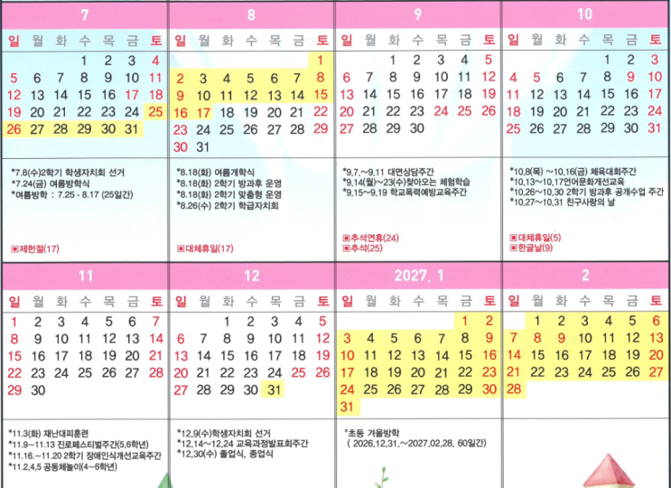 정평초등학교 연간 학사 일정