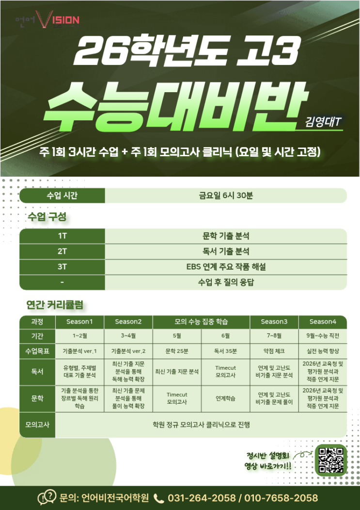 [언어비전] 2026 고3 수능대비반 개강 안내
