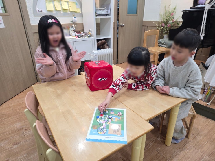 안녕하세요 샤론음악학원입니다~~ 이번 주는 자이언트 주사위로 아이들과 주사위 놀이를 즐겼습니다~ 4가지로 즐긴 이번 주 클래스 수업을 소개합니다!! 첫 번째로 음표 주사위로 즐기는 높은음자리표입니다! 시작 전에 6면의 이름과 박자를 한 번씩 점검하고, 알려주고 시작했어요 높은음자리표를 먼저 다 그린 사람이 승리!! 두 번째로는 쉼표 주사위였는데요, 쉼표의 박자만큼 앞으로 나아갈 수 있기에 박자가 중요한 놀이입니다~ 쉼표에는 1-4박짜리의 쉼표뿐 아니라 반박 + 반박의 쉼표도 두었어요 낮은 음자리표를 순서대로 한 칸씩 나아가 제일 먼저 도착하는 사람이 이기는 게임! 쉼표의 박자도 익히고, 낮은음자리표의 그리는 순서도 자....... <img src="https://blogthumb.pstatic.net/MjAyNjAzMTRfMTY3/MDAxNzczNDU0MTEyOTA3.opC7Rnq2lmDmRSBVWWF56D7yJBeYgWm37rNVfCLOWHog.d75yOYSEXBYy-BNX_sALrrZYZnG_7RtlpL8kp8utFMQg.JPEG/KakaoTalk_20260313_112138589_06.jpg?type=s3" />