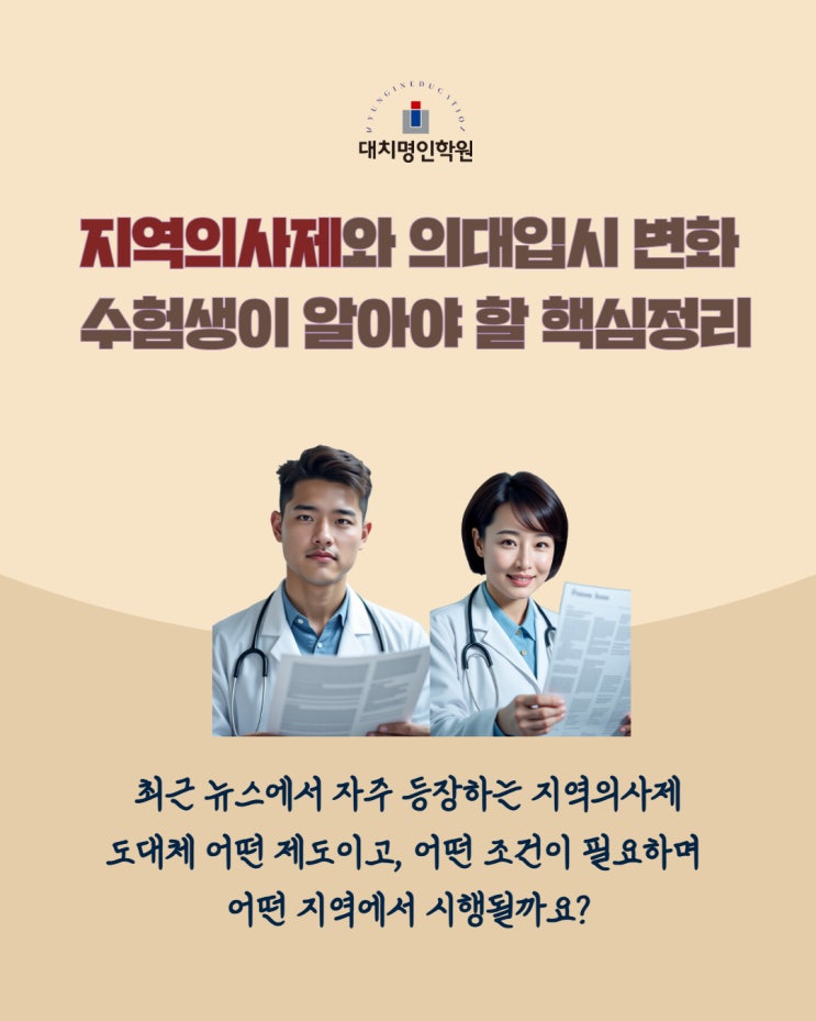 대치명인학원(의정부/대전/천안/세종/사직/센텀), "의대 준비한다면 반드시 알아야 할 '지역의사제' 총정리"