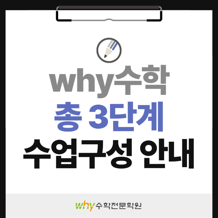 학원을 고를 때 "수업이 어떻게 구성되어 있나요?" 라는 질문, 한 번쯤 해보셨을 거예요. 단순히 몇 시간 수업인지보다, 그 시간 안에 아이가 어떤 방식으로 배우고 확인받는지가 훨씬 중요하니까요. why수학의 기본 수업은 1. 개별 진도 수업 2. 그룹 심화 수업 3. 1:1 클리닉 수업 세 가지 축으로 구성되어 있습니다. 1. 개별 진도 수업 개별 진도 수업은 주 2회, 40분씩 2타임으로 진행됩니다. 중등부는 40분 3타임으로 운영됩니다. 단순히 강의를 듣는 시간이 아니라, 1:1 코칭과 진도 편성 체크가 함께 이루어집니다. 아이가 어디까지 이해했는지, 다음 단계로 넘어갈 준비가 됐는지를 선생님이 직접 확인하며 진행하는 방식입니....... <img src="https://blogthumb.pstatic.net/MjAyNjAzMTZfMzMg/MDAxNzczNjQyMDI2Mzk3.6lCWxBOcpXgNqR9goKYpclyTWFdrQCPkJ0ZF-LgyEOgg.5ibqgfE6T8QDy3w33jGTCr_30qFEt0BMEE8q0yHIbL0g.PNG/%C1%A6%B8%F1%C0%BB_%C0%D4%B7%C2%C7%D8%C1%D6%BC%BC%BF%E4..png?type=s3" />