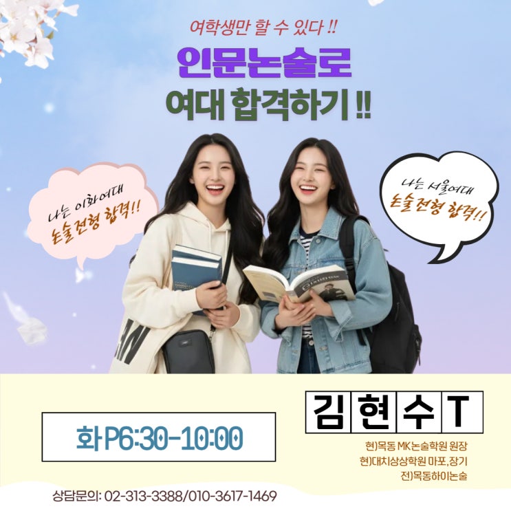 내신 굴레를 벗어날 '역전의 카드', 2027 여대 논술 완벽 전략 안녕하세요, 대치상상학원입니다. 지금 이 글을 읽고 계신 수험생과 학부모님, 혹시 내신 성적표 앞에서 지원 대학의 한계를 느끼며 멈칫하고 계시지는 않나요? 2027학년도 대입에서 '여대 논술'은 단순한 전형 중 하나가 아닙니다. 내신이 아쉬운 여학생들에게 주어지는 가장 확실한 역전의 기회입니다. ✨ 왜 '여대 논술'이 필승 전략인가? (3가지 포인트) 1️⃣ 내신 0% 반영, 오직 실력으로만 뒤집기! 해당 대학: 이화여대 · 성신여대 · 동덕여대 · 덕성여대 내신 점수 없이 오직 '논술 답안지' 하나로 합격자를 선발합니다. 3년간의 내....... <img src="https://blogthumb.pstatic.net/MjAyNjAzMjBfMTI1/MDAxNzc0MDA3MDEwMTQ0.Wl9bv1XZ6s0JlgMTA-CKnVWZ0F2eDFGpyiZBmK3HPg0g.kteldbcYz_UZXBGO3POIA4MfE95b1RcTN3H0qp18mv8g.JPEG/%BF%A9%B4%EB%B3%ED%BC%FA.jpg?type=s3" />