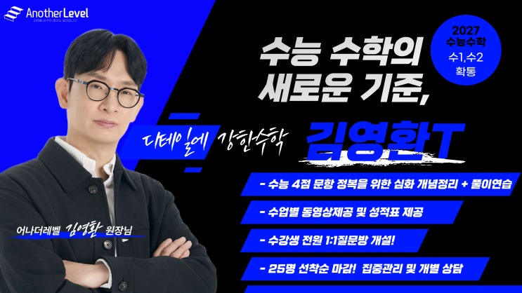 어나더레벨 수능 수학 공통(수1,수2) 시즌2 (3/29개강) (일)pm1:30~5:00 확률과 통계 시즌2 (2/28개강) (토)pm1:30~5:00 김영환 선생님의 수업은 차별화된 관리가 있습니다!! #강서구 수능학원 #강서 수능수학 #강서 수능국어 #강서 수능영어 # 김영환수학 #권기덕영어 #임주연국어 #김도성국어 #어나더레벨 수능 #수능 확통 <img src="https://blogthumb.pstatic.net/MjAyNjAzMDhfMjgx/MDAxNzcyOTYyNDI2NTUx.4yiekLqGw3ogqMpSdpq4js9DNFI7Li_9Yw1kETWOTOcg.sBnP5GGW6rVKYtx8C6H8BV6yhxls7yK_h31erCCrXmsg.JPEG/%B1%E8%BF%B5%C8%AF%BF%F8%C0%E5%B4%D4.jpg?type=s3" />