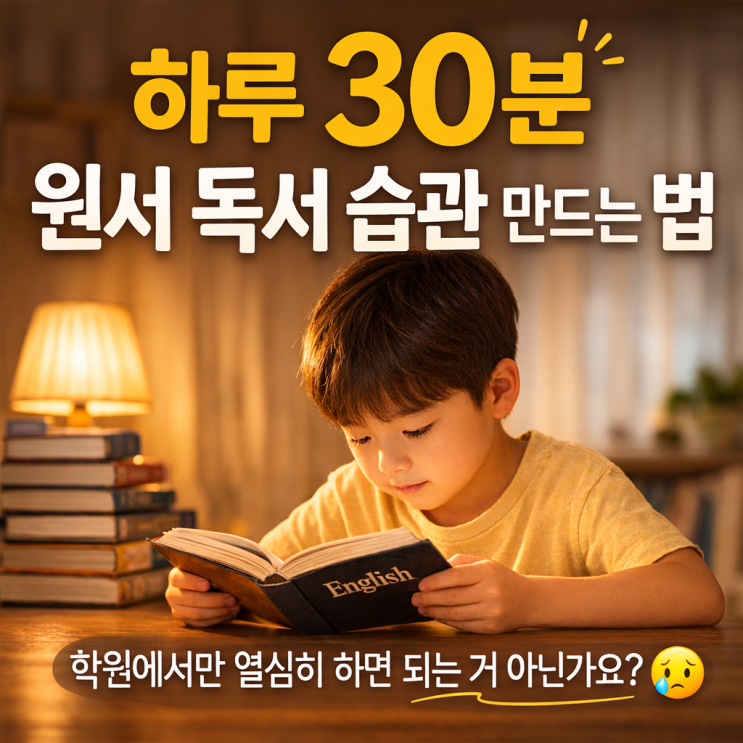 하루 30분, 집에서 영어 독서 루틴 만드는 법 "학원에서만 열심히 하면 되는 거 아닌가요? " 영어도서관에서 책을 읽고, 선생님과 책에 대해 즐겁게 소통하는 시간은 학생의 독서에 대한 동기부여와 흥미를 높여줍니다. 하지만 솔직히 말씀드리면, 수업 시간만으로는 부족합니다. 영어는 결국 '노출량 싸움'입니다. 언어는 시험 공부처럼 벼락치기가 통하지 않아요. 매일 조금씩, 꾸준히 인풋이 쌓여야 비로소 실력이 됩니다. 그래서 저희는 영어도서관을 운영하면서 도서 대여 서비스를 함께 운영하고 있습니다. 집에서 매일 영어책을 읽는 루틴이 만들어지면, 영어책이 주는 압도적인 인풋의 바다에 학생이 빠져들게 됩....... <img src="https://blogthumb.pstatic.net/MjAyNjAzMTNfMjQg/MDAxNzczNDAzMTcyNzYx.D5VngSKBx-SFvyhJ7VdhjKJSiKE21dGwE3Dh2HD9aRcg.c9wxNptUEp1uLaI7a_-7-WVAAAaP9uLixiTCxKbnR5Yg.PNG/fad69fe0-0eb7-4a7f-8415-075f9dbe2abe.png?type=s3" />