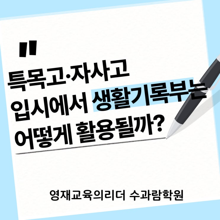 창원자사고준비 특목고·자사고 입시에서 생활기록부는 어떻게 활용될까? 수과람학원