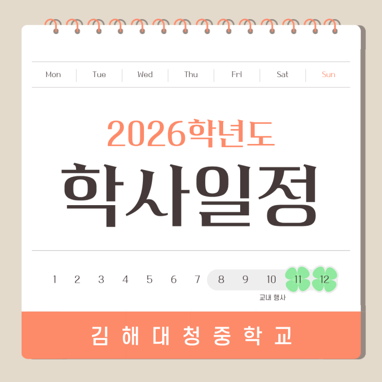 장유수학학원- 김해대청중학교 2026년도 학사일정 및 시험 일정 정리