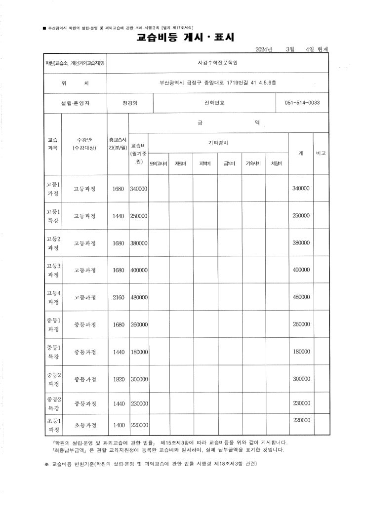 자강수학전문학원 / 등록번호 제3089호 / 학교교과교습학원(보습) **자강수학은 교육지원청에 등록된 교습비로 수강료가 책정됩니다. (월 12회 기준/회차별 수강료) <img src="https://blogthumb.pstatic.net/MjAyNjAzMTFfMjIg/MDAxNzczMjE2NjY0NDE3.2eMFyttg4fXCaeUqE8CQU5-BkOy3dIL11dmjt9WGnmQg.4sNhIPAbwI06J47BoeaK5gRZtiBtYUKHRWYIBRFayHsg.JPEG/20260311150025_page-0001.jpg?type=s3" />