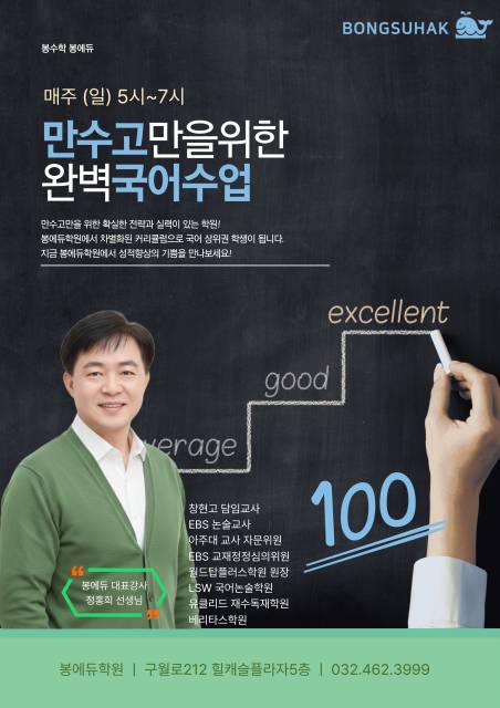 구월동 수학학원 & 구월동 국어학원) 봉에듀 만수고국어내신반 개강!