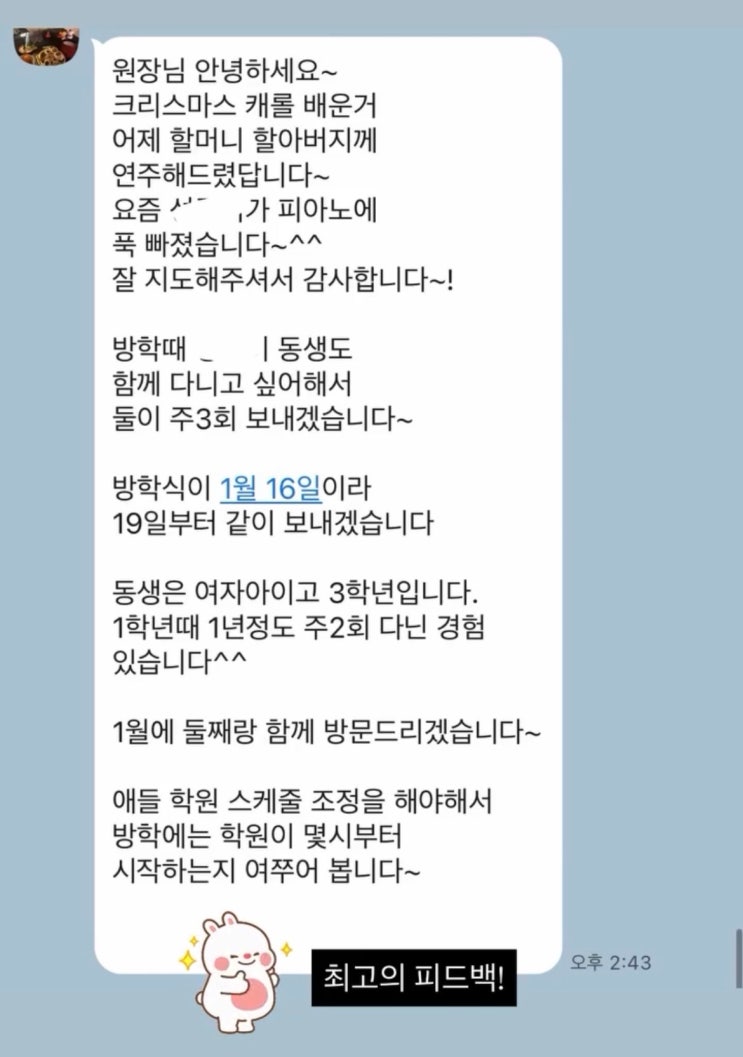 인천 서구 검단 음악학원 상상음악학원 부모님 피드백과 학원 일상