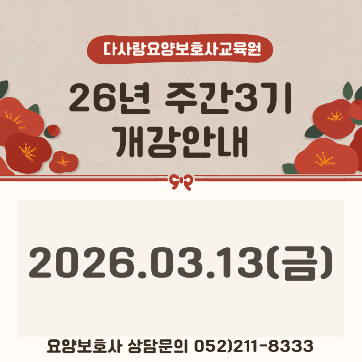 ★ 다사랑요양보호사교육원 2026년 주간3기 개강일정 안내