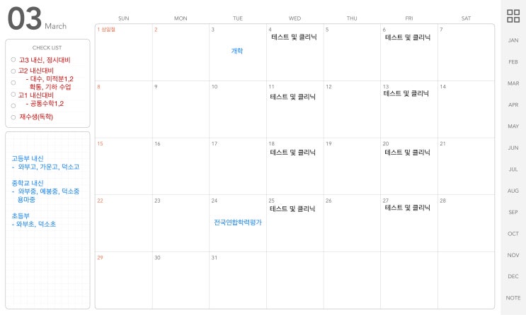 3월 시간표 및 일정